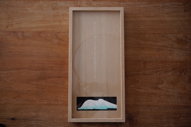 原画No.3『胸に耳当てて聴いてる心音と君が私に流れ込んでくる』 絵・寺田マユミ、短歌・土門蘭、額装・國重裕太 2025年に行われた、寺田マユミと土門蘭の巡回展『「100年後」の7年後』で展示された作品です。 フレーム外寸:H445×W215×D30mm 原画サイズ:H93×W195 mm 制作年:2024 画材:アクリラガッシュ ・顔料インク・プレダン紙 【注意事項】 本作品は巡回展示に使用された作品のため、アクリル部分に小さな傷があります(写真6枚目)。 展示作品としてのコンディションであることをご了承のうえご購入ください。